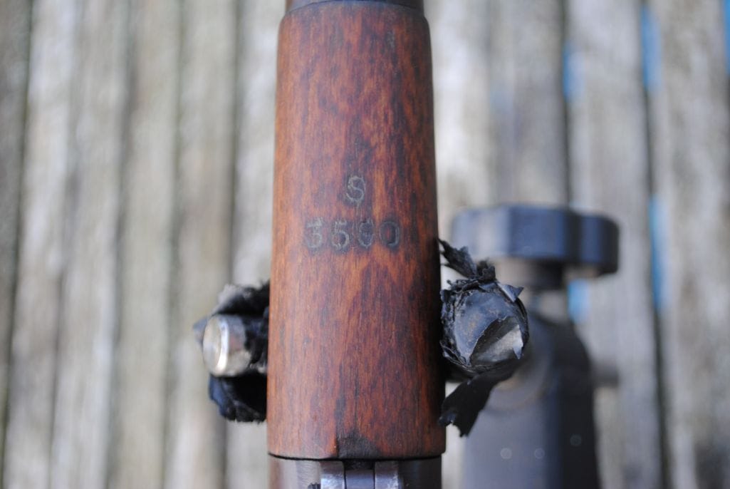 All parts are correct and matching serial numbers throughout, including the fore end stock, receiver, bolt, and magazine. The barrel has the correct scalloped lightening cuts and the bolt has the correct hollowed out handle.