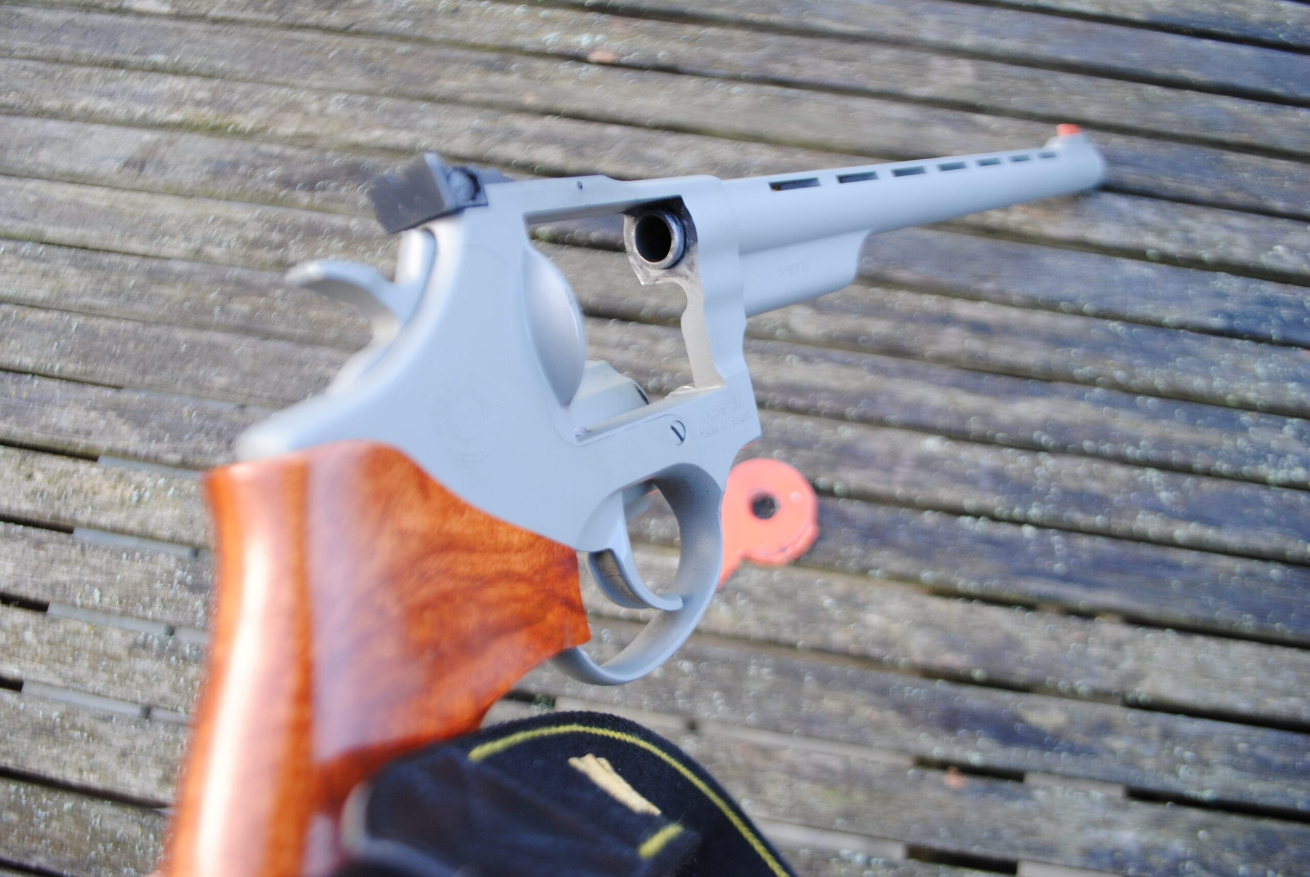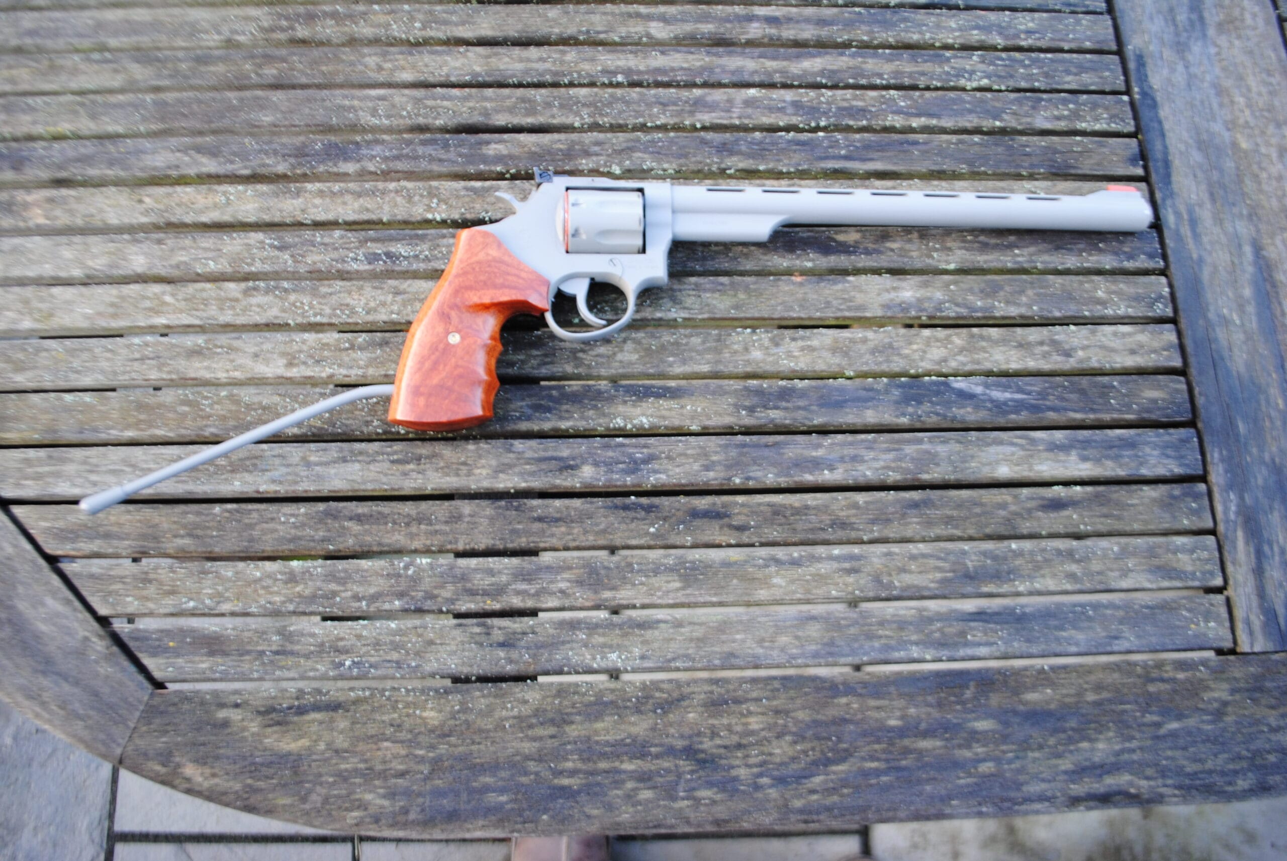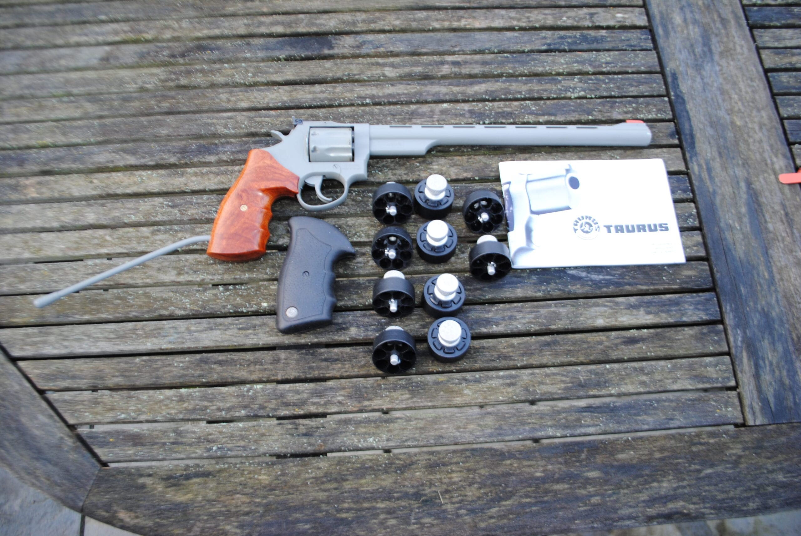 In great condition, this Taurus Long Barrelled Revolver is fitted with an aftermarket hand grip, with the original grip included.