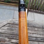 This rifle is in excellent condition, including the bore. It has matching numbers on the wrist, bolt and fore end stock. The magazine is mismatched, which is not unusual. There is a small dent on the butt at the wrist shown in the pictures.