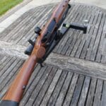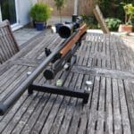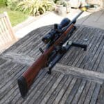 In great condition, this preowned Remington Model 783 with a heavy target profile barrel combined with a laminate stock, crossfire trigger, moderator threaded and detachable steel box magazine. This particular rifle is fitted with a Leupold VX-III 8.5-25X50 Scope.